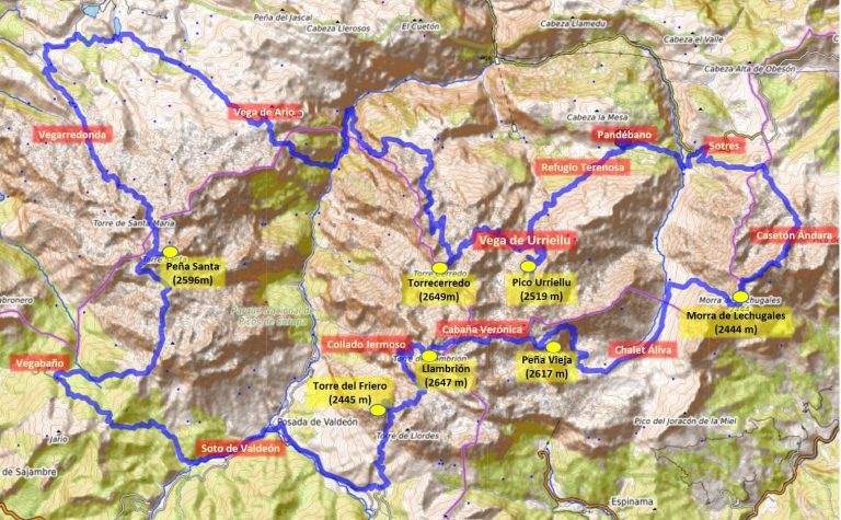 Nuestra Ruta. La ruta parte de Pandébano y realiza el recorrido en el sentido de las agujas del reloj ascendiendo en primer lugar a Torrcerredo. La ruta no terminó en Pandébano, subimos de nuevo al Refugio de Vega de Urriellu para escalar El Picu para dar por concluido nuestro proyecto..